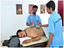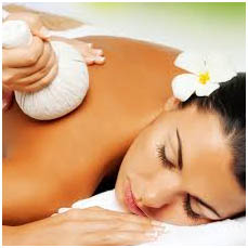 A massage therapy using warm herbal leaves tied in boluses to alleviate joint and muscle pain.