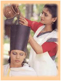 A relaxing therapy in which warm, herbal oil is poured continuously over the forehead to calm the mind and relieve stress.