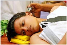 An Ayurvedic ear therapy where medicated oils are poured into the ear canal to improve hearing and treat ear conditions.