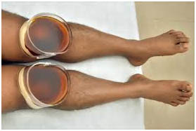 A knee treatment where warm medicated oil is retained around the knee joint to relieve pain and inflammation.
