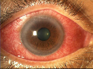 An inflammation or infection of the eye’s conjunctiva, causing redness, irritation, and discharge, commonly known as “pink eye.”