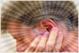 A persistent ringing or buzzing sound in the ears, often linked to hearing loss or ear damage.